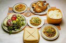 ผักสด ถั่วฝักยาว กะหล่ำปลี ยอดปักบุ้ง ยอดและฝักกระถิน ยอดมะยม ไก่ย่าง แคบหมู
